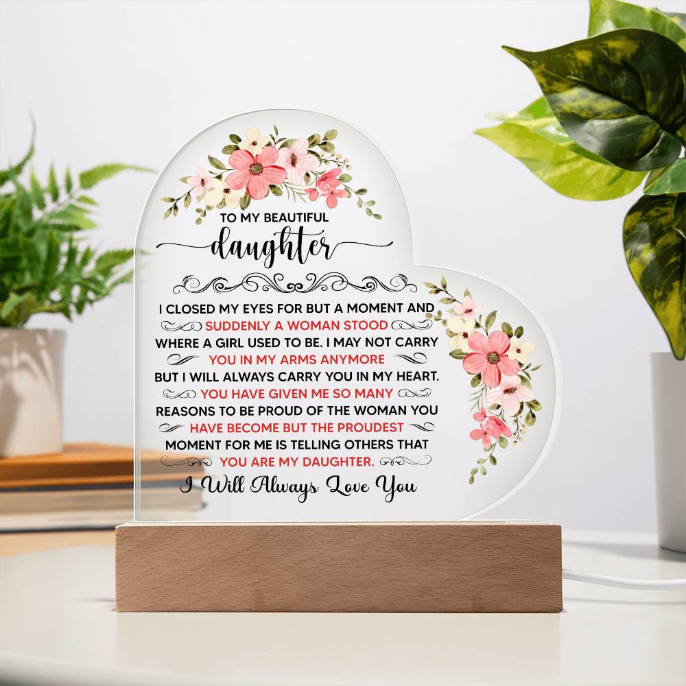 To My Beautiful Daughter – Acrylic Heart Plaque